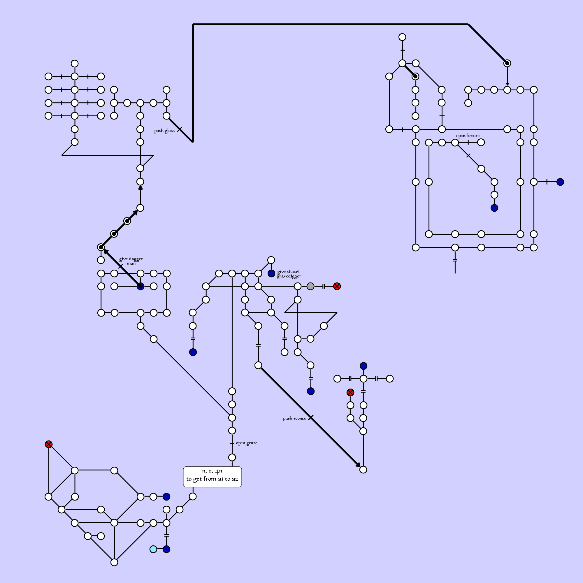 4. The way through the corridors is: s, all e, all s, all w, all n,