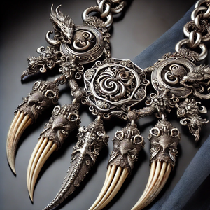 An amulet of dragon teeth on a silver chain