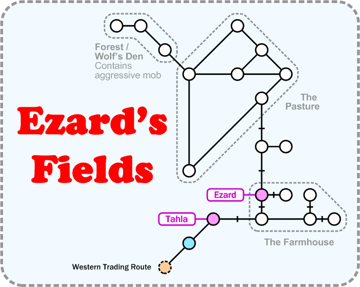 Four miles past the Shire along the Western Trade Route, a small farmer has claimed and cleared a meadow of his own, raising sheep for mutton and wool. Ezard and his family welcome all young adventurers, but warn them not to endanger his precious flock.