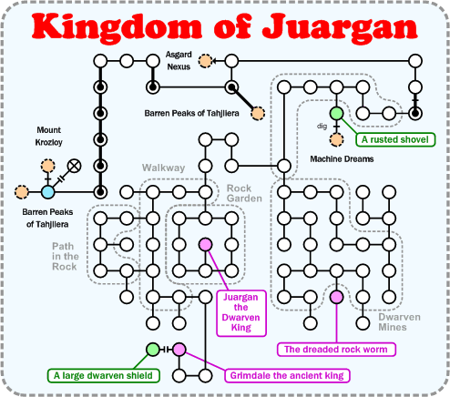 The mighty dwarven Kingdom of Juargan was once a powerful influence in the battle against Darkness. Sealed within their impregnable city, any attack against them was scoffed at. However, one day centuries ago, the great mountain kingdom sealed its gates and refused to communicate with any of the other races. The reason for their desertion is still unknown, but many have found hidden entrances into their vast underground complex.