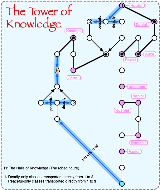 Once, many ages past, great scholars and the most powerful of magicians graced the corridors of this magnificent tower. During The Shattering they, nor any of the Gods at the time, could protect the innocents from the great evils which terrorized and decimated the Realms. All who inhabited the tower were killed, but before their souls departed these lands the Gods ripped the structure from its very foundations and placed it in the safety of an Immortal realm. Here, the spirits of those who inhabited the tower remain teaching new adventurers for all eternity. It is also rumored that within this realm is the location of the headquarters of the renowned Newbie Council.